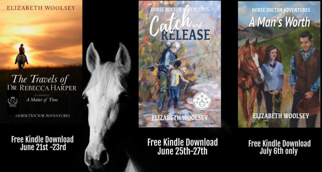 “Okay, I won’t come over.” Behind my log cabin is a National Forest with trails and a beautiful lake. “Can you have Luke bring Digger over so I can go to Saddleback Lake and get my fix?” Digger was the horse that clinched my acceptance of Colin’s wedding proposal—good looking, talented, and old-lady-broke-to-death. He was the horse of my dreams. In truth, Colin had given him to me when I helped Colin’s grandson emerge from a long period in which he didn’t speak after watching his mother violently killed in a drug deal gone wrong. Wedding or not—Digger was mine.